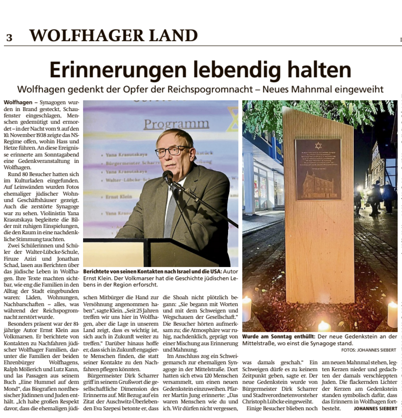 Gedenkveranstaltung zur Reichspogromnacht in Wolfhagen